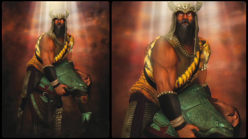 بعد از پایان تحقیقات کلیه اطلاعات را برای طراحی شخصیتها استفاده کردم. به طور مثال برای خلق یک شخصیت با توجه به تحقیقات می دانستم که این شخصیت دارای کلاه خود و جوشن است و بازوبند دارد یا گرزی گاو سر بدست میگیرد. بر این مبنا طراحی های اولیه را انجام دادم و بعد از انتخاب نهایی با مایا و زی براش مدلهای اولیه را تولید کردم. مراحل آنرپ و تکسچرینگ و افزودن جزییات را انجام دادم و در نهایت در محیط مناسب رندر نهایی و کارهای دیگه.