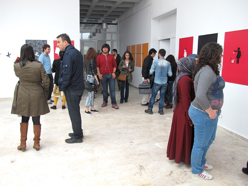 دانشکده هنرهای زیبای دانشگاه “حاجت تپه” از چندین دپارتمان مختلف از جمله گرافیک ، مجسمه سازی ، معماری داخلی و طراحی محیطی، نقاشی ، سرامیک تشکیل شده و این نمایشگاه در گالری دانشکده مجسمه سازی برگزار شد. در دو روز افتتاحیه ای که برای این نمایشگاه برگزار شد ، روز اول آن با استقبال دانشجویان گرافیک و نیز دانشجویان سایر رشته ها همراه بود و در روز دوم، علاوه بر دانشجویان، اساتید دپارتمان های مختلف دانشکده هنر نیز، از جمله ریس دپارتمان هنر خانم پروفسور “ملتم ایلماز” و ریس دپارتمان گرافیک خانم پروفسور ” یورداکول” نیز حضور یافتند.