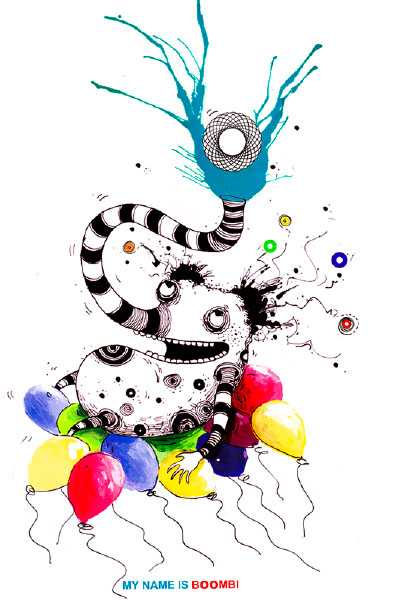 کارتون مورچه، مورچه خوار رو در دوران کودکی دوست داشتم و این فرم به صورت ناخودآگاه در ذهنم همیشه بود و در اتودی که برای کانون پرورشی میزدم این کاراکتر شکل گرفت و پرورشش دادم. اسم این شخصیت بومبی (BOOMBI) هست و در بیشتر کارهام حضور فعال داره و دوست همیشگی منه.